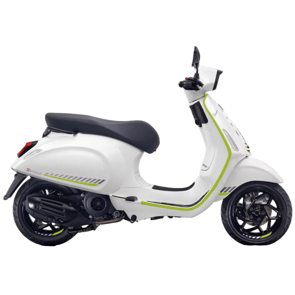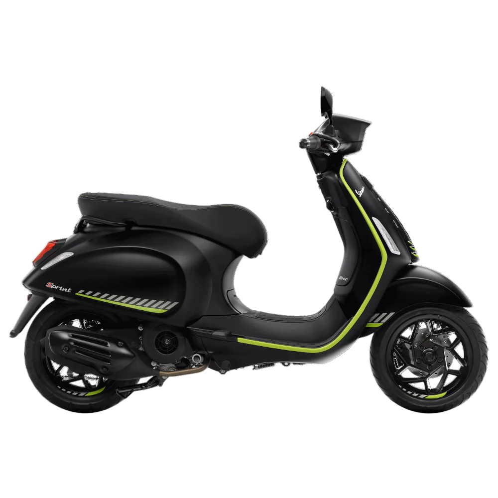 The Vespa Sprint Tech adds technological innovation to the Vespa Sprint’s sporty soul to create a style that is dynamic and exclusive. Intense, iridescent, material colors combine to perfection in a striking play of light, while contrasting fluro-green details inject a high-tech, dynamic touch.